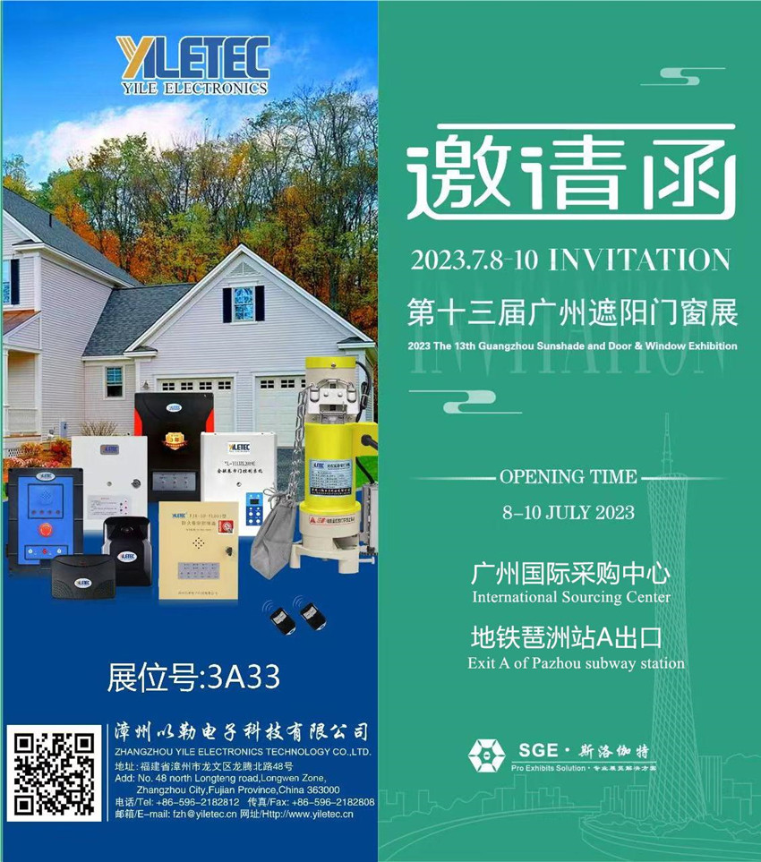 漳州以勒电子科技有限公司( YILE )将参加第13届 广州遮阳门窗展(2023),诚挚期待您的莅临指导!