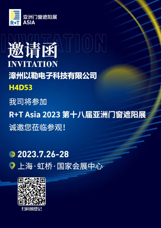 漳州以勒电子科技有限公司( YILE )将参加第18届 亚洲门窗遮阳展(2023),诚挚期待您的莅临指导!