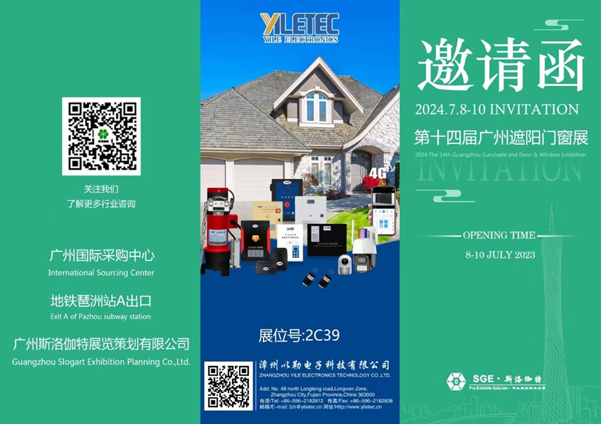 漳州以勒电子科技有限公司( YILE )将参加第14届 广州遮阳门窗展(2024),诚挚期待您的莅临指导!