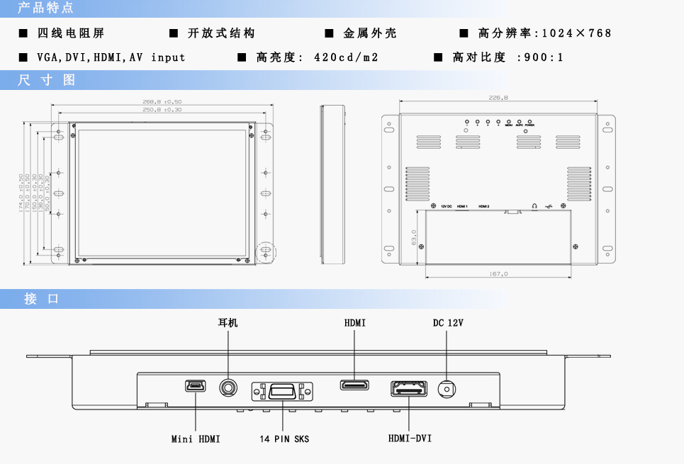 | 触摸屏接口 | USB | ||