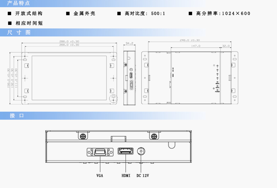 | 分 辨 率 | 1024RGB(宽)×600(高) | ||