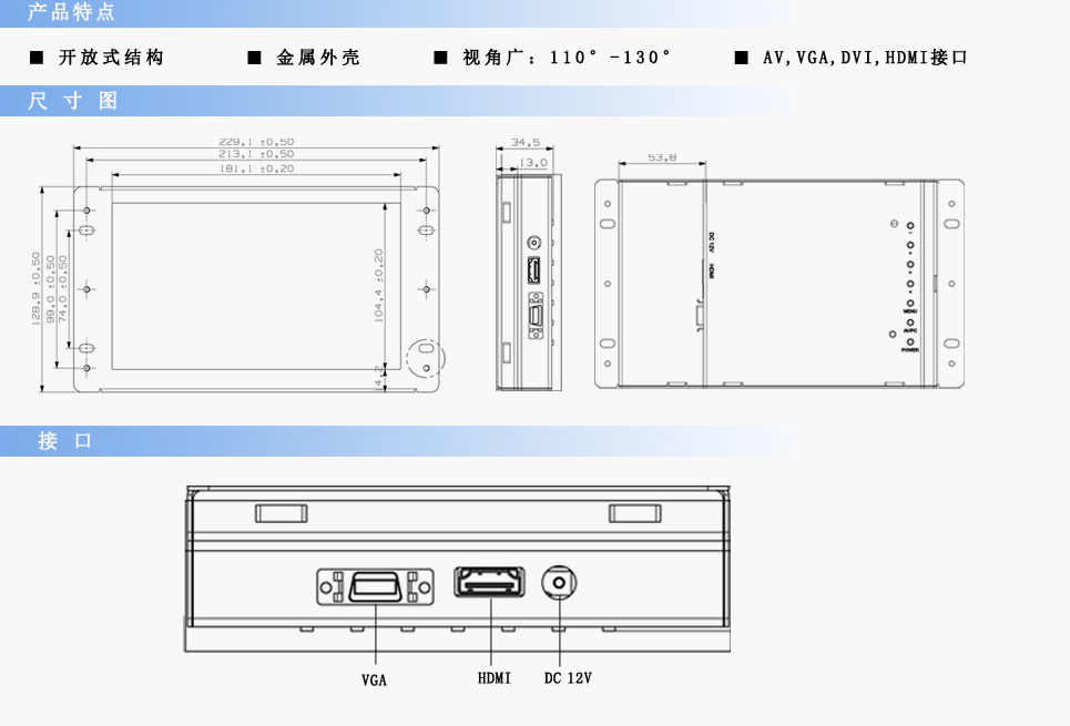 尺寸:229.1×128.9×34.5 mm