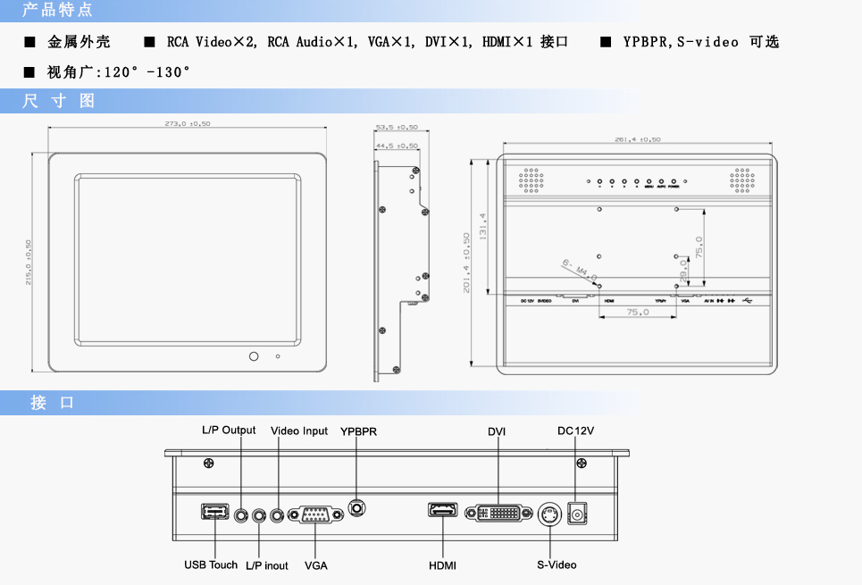 | 输入信号 | RCA Video×2,RCA Audio×1,VGA×1,DVI×1,HDMI×1,YPBPR×1,S-video×1 | ||
